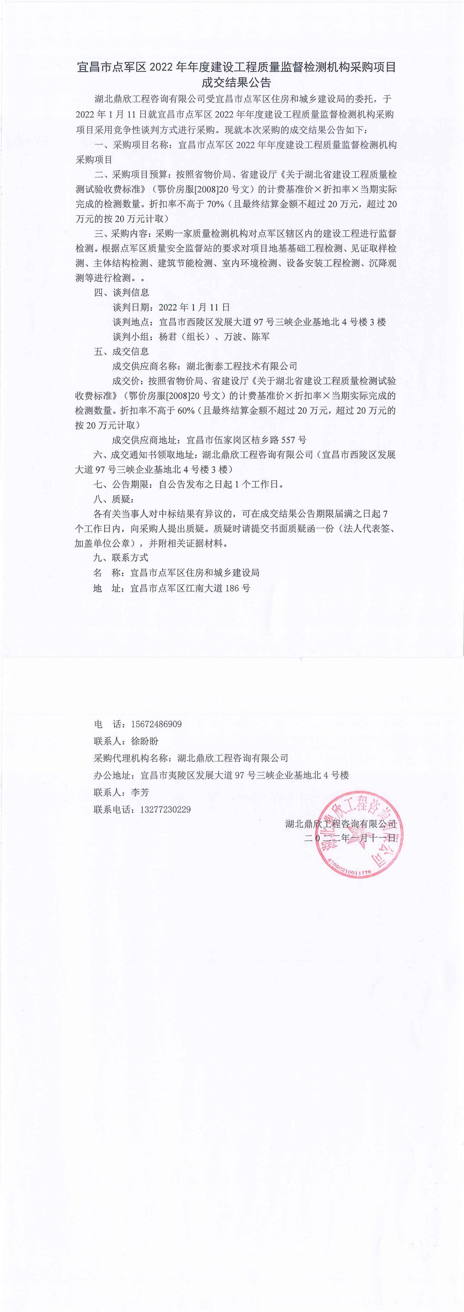 宜昌市點(diǎn)軍區(qū)2022年年度建設(shè)工程質(zhì)量監(jiān)督檢測(cè)機(jī)構(gòu)采購項(xiàng)目成交公告