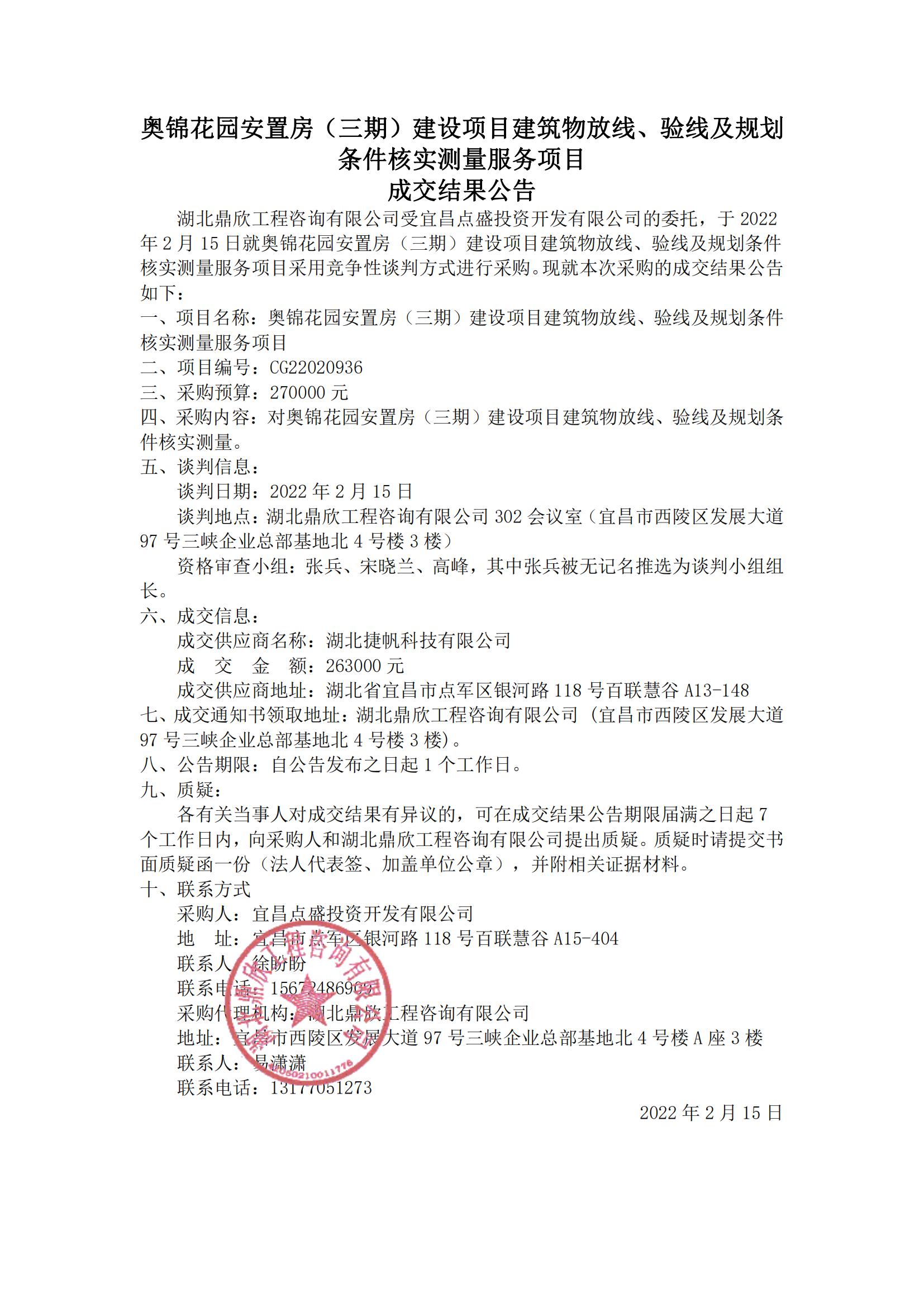 奧錦花園安置房(三期)建設(shè)項(xiàng)目建筑物放線(xiàn)、驗(yàn)線(xiàn)及規(guī)劃條件核實(shí)測(cè)量服務(wù)項(xiàng)目成交結(jié)果公告