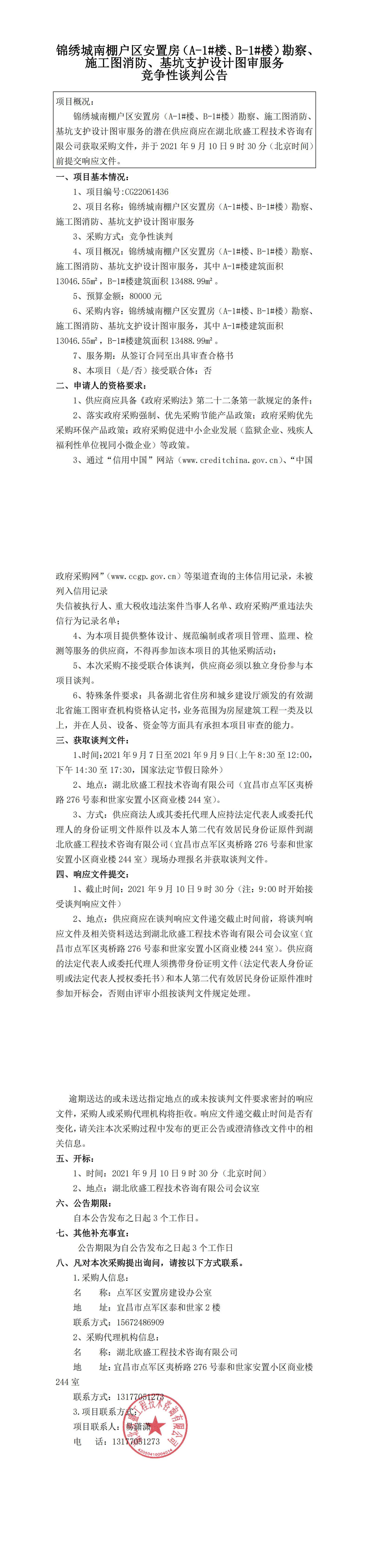 錦繡城南棚戶區(qū)安置房(A-1#樓、B-1#樓)勘察、施工圖消防、基坑支護設(shè)計圖審服務(wù)競爭性談判公告