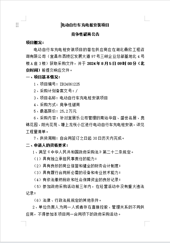電動(dòng)自行車充電樁安裝項(xiàng)目競爭性磋商公告