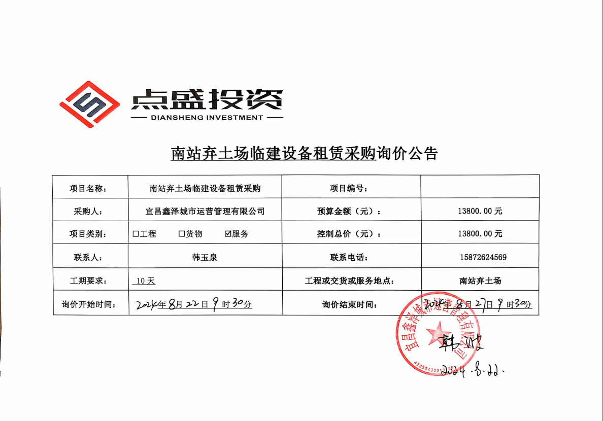 南站路棄土場臨建設(shè)備租賃采購項目詢價公告