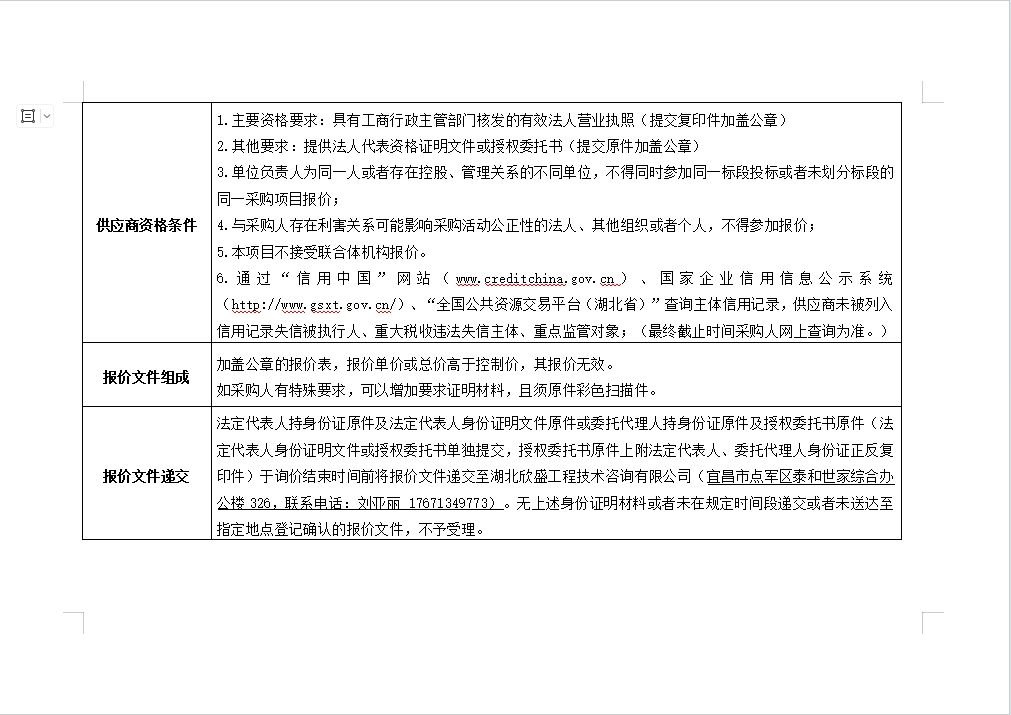 詢價(jià)公告