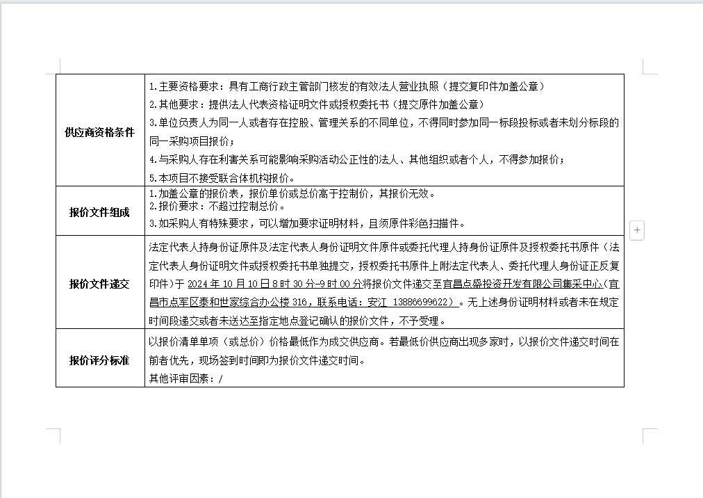 詢價(jià)公告
