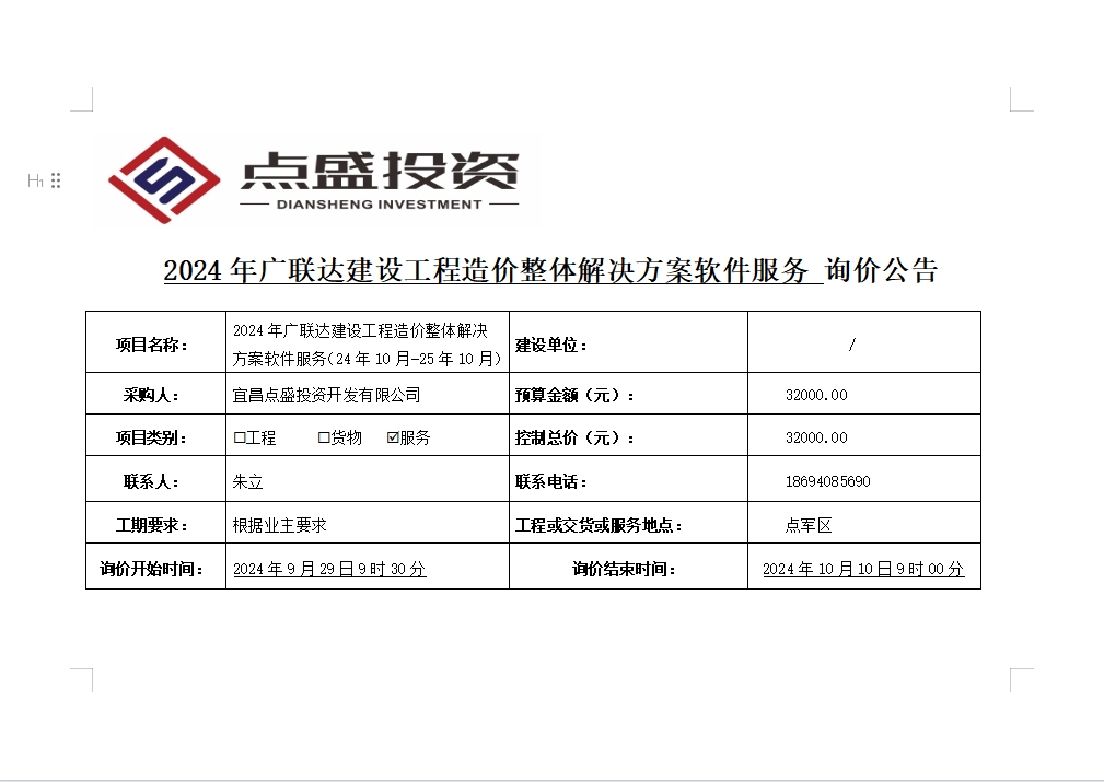 2024年廣聯(lián)達(dá)建設(shè)工程造價(jià)整體解決方案軟件服務(wù)詢價(jià)公告