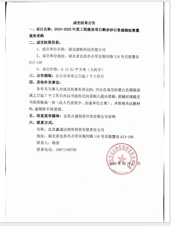2024-2025年度工程建設(shè)項(xiàng)目剩余砂石資源測繪算量服務(wù)采購成交公告