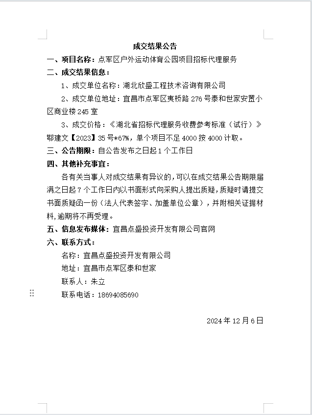 發(fā)布時間:2024/12/6 來源:宜昌點盛投資開發(fā)有限公司 訪問:7134