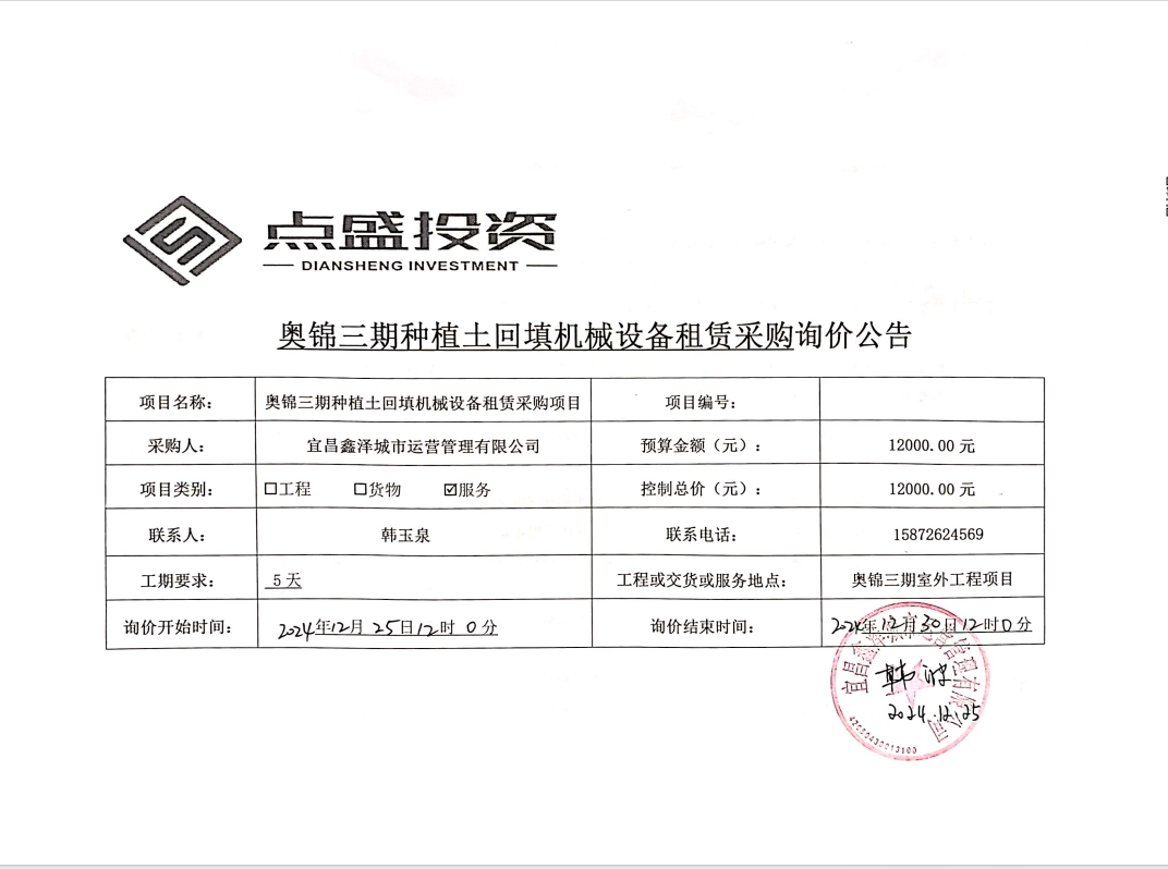 奧錦三期種植土回填機(jī)械設(shè)備租賃采購詢價公告