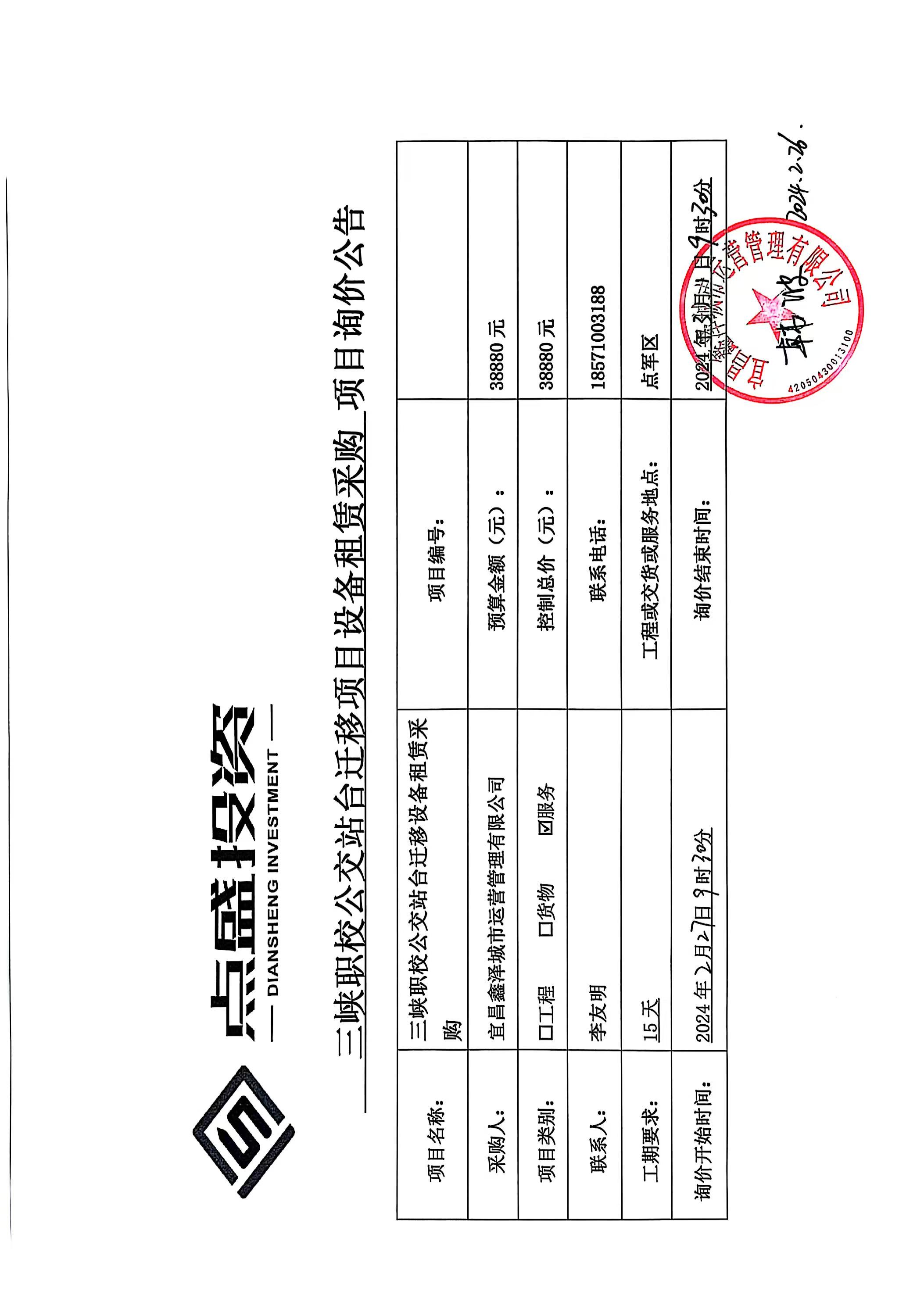 三峽職校公交站臺遷移項目設(shè)備租賃采購成交公告