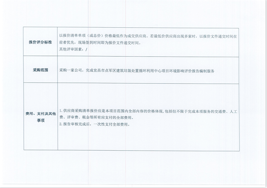 宜昌市點(diǎn)軍區(qū)建筑垃圾處置循環(huán)利用中心項(xiàng)目環(huán)境影響評(píng)價(jià)報(bào)告編制服務(wù)項(xiàng)目詢價(jià)公告