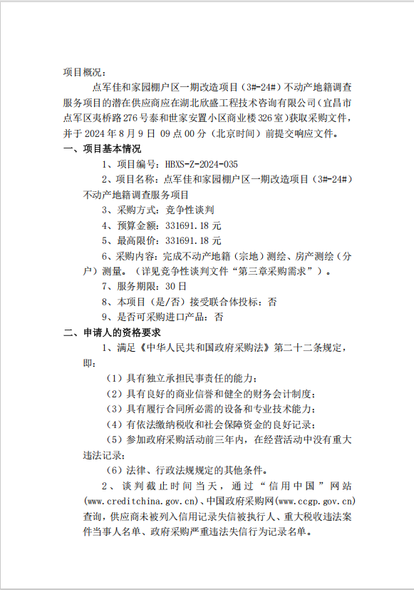 點(diǎn)軍佳和家園棚戶區(qū)一期改造項目(3#-24#)不動產(chǎn)地籍調(diào)查服務(wù)項目談判公告