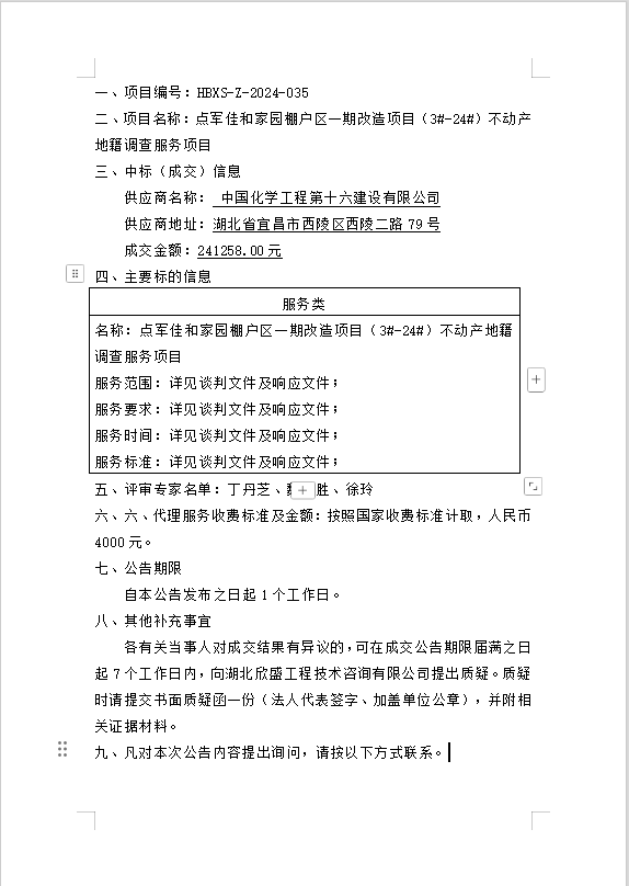 點軍佳和家園棚戶區(qū)一期改造項目(3#-24#)不動產(chǎn)地籍調(diào)查服務項目成交公告