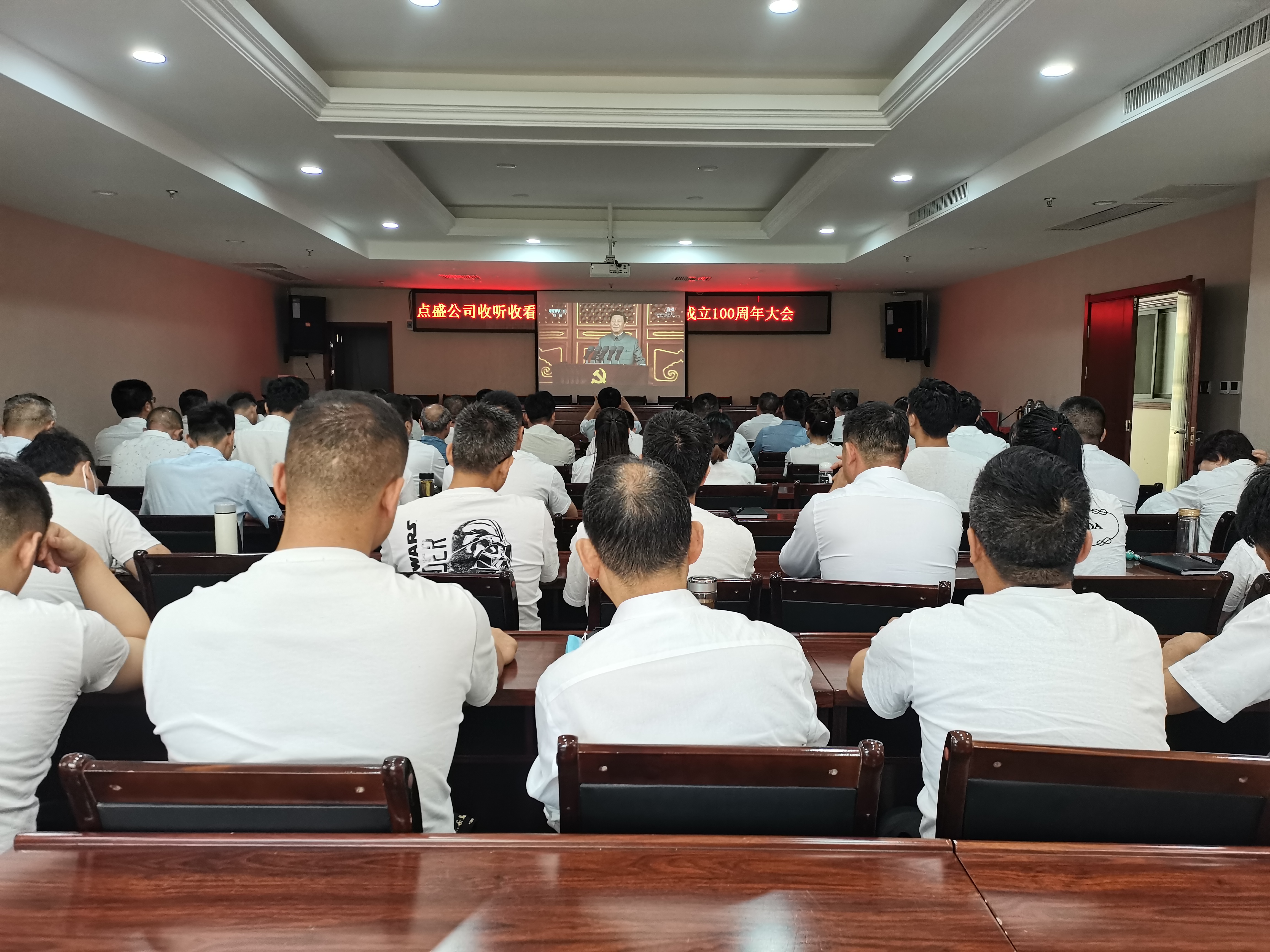 (通訊員:嚴薇、劉玲佳)2021年7月1日,慶祝中國共產(chǎn)黨成立100周年大會在北京天安門廣場隆重舉行。上午8時,宜昌點盛投資開發(fā)有限公司全體人員在會議室收聽收看大會直播。大家聚精會神聆聽了習近平總書記在慶祝中國共產(chǎn)黨成立100周年大會上的重要講話,并認真記錄講話重點。